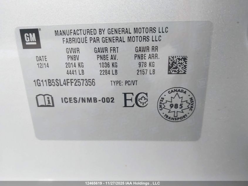2015 CHEVROLET MALIBU 2015 року Бензин, , Передний привод, vin - 1G11B5SL4FF257356 из США