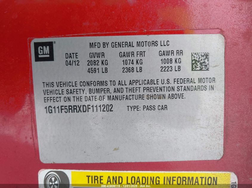 Цвет КрасныйЦилиндры 4Привод Передний приводVIN 1G11F5RRXDF111202Состояние Заводится и едет (проверено)Повреждения Задняя AutoRIA