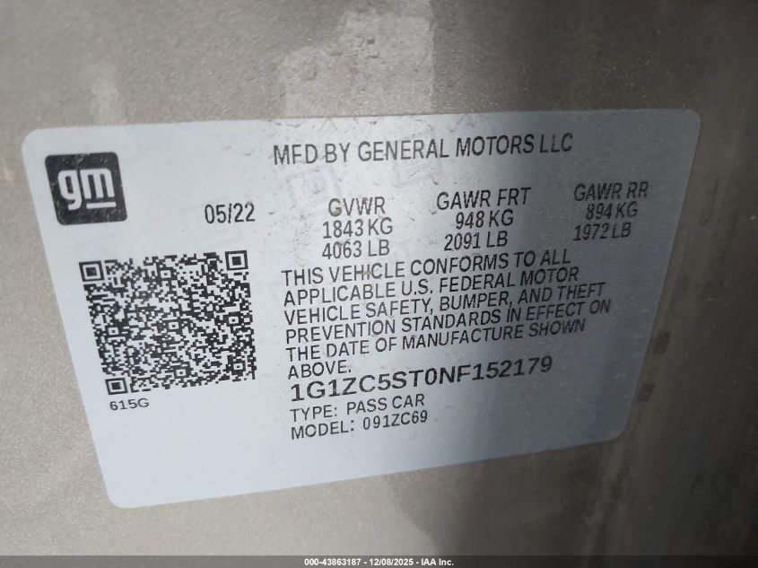 2022 CHEVROLET MALIBU 2022 року Бензин, 1.5, Передний привод, vin - 1G1ZC5ST0NF152179 из США