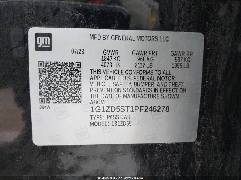 2023 CHEVROLET MALIBU 2023 року Бензин, 1.5, Передний привод, vin - 1G1ZD5ST1PF246278 из США