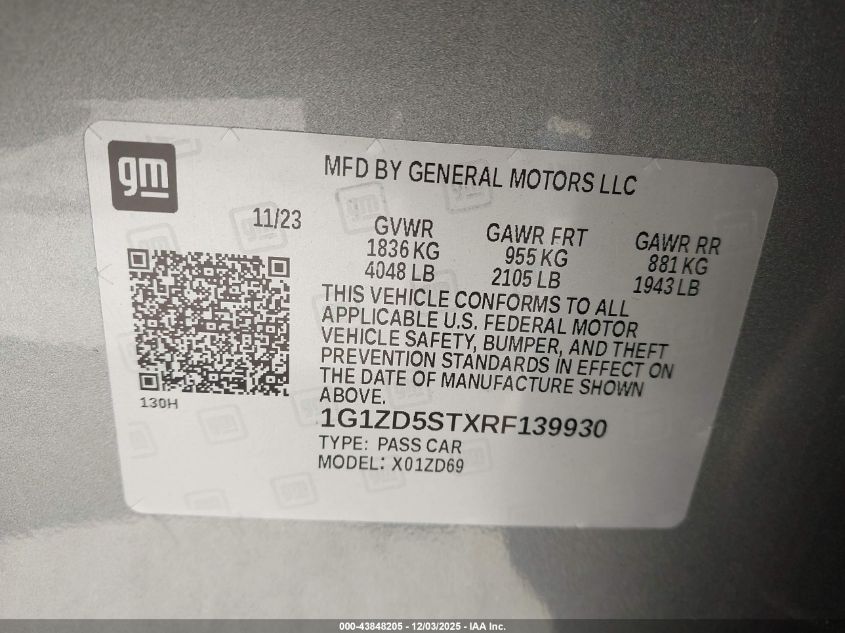 2024 CHEVROLET MALIBU 2024 року Бензин, 1.5, Передний привод, vin - 1G1ZD5STXRF139930 из США