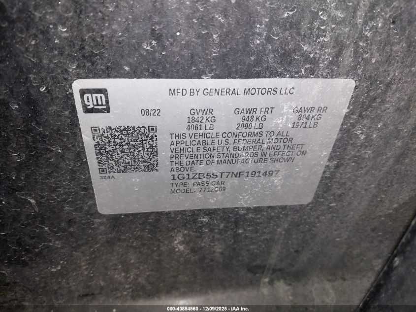 2022 CHEVROLET MALIBU 2022 року Бензин, 1.5, Передний привод, vin - 1G1ZB5ST7NF191497 из США