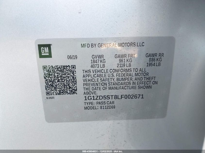 2020 CHEVROLET MALIBU 2020 року Бензин, 1.5, Передний привод, vin - 1G1ZD5ST8LF002671 из США