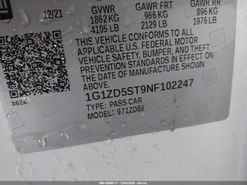 2022 CHEVROLET MALIBU 2022 року Бензин, 1.5, Передний привод, vin - 1G1ZD5ST9NF102247 из США