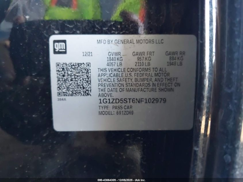 2022 CHEVROLET MALIBU 2022 року Бензин, 1.5, Передний привод, vin - 1G1ZD5ST6NF102979 из США