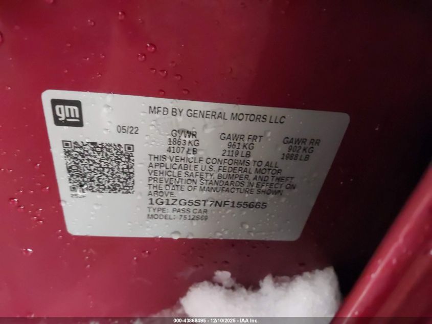 2022 CHEVROLET MALIBU 2022 року Бензин, 1.5, Передний привод, vin - 1G1ZG5ST7NF155665 из США