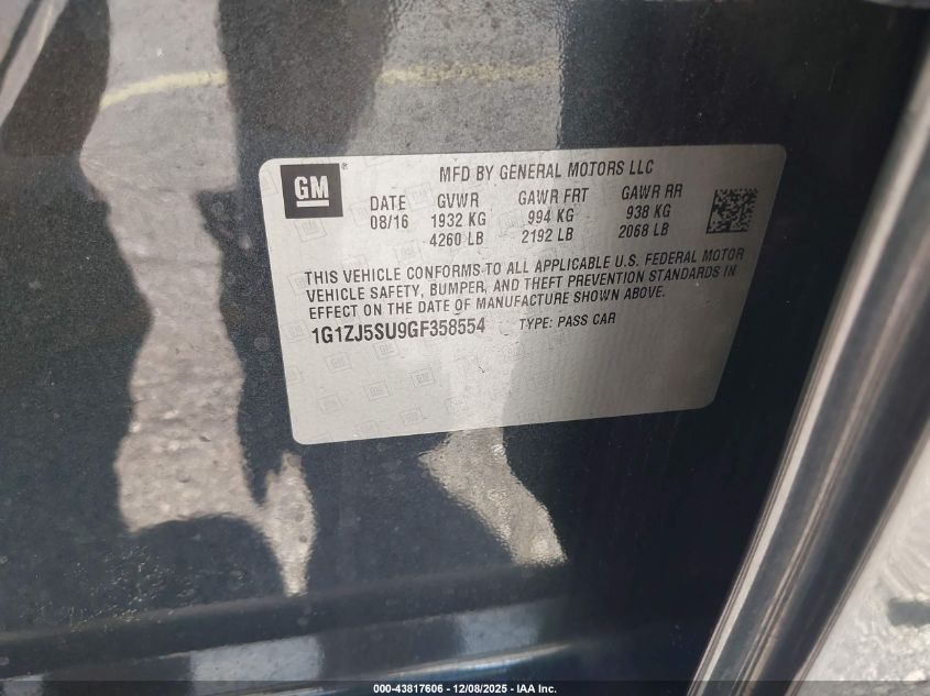 2016 CHEVROLET MALIBU 2016 року Гибрид, 1.8, Передний привод, vin - 1G1ZJ5SU9GF358554 из США