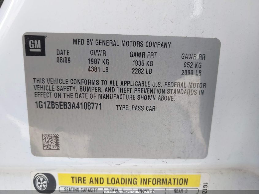 Цвет БелыйЦилиндры 4Привод Передний приводVIN 1G1ZB5EB3A4108771Состояние СтационарноПовреждения Передняя и задняя