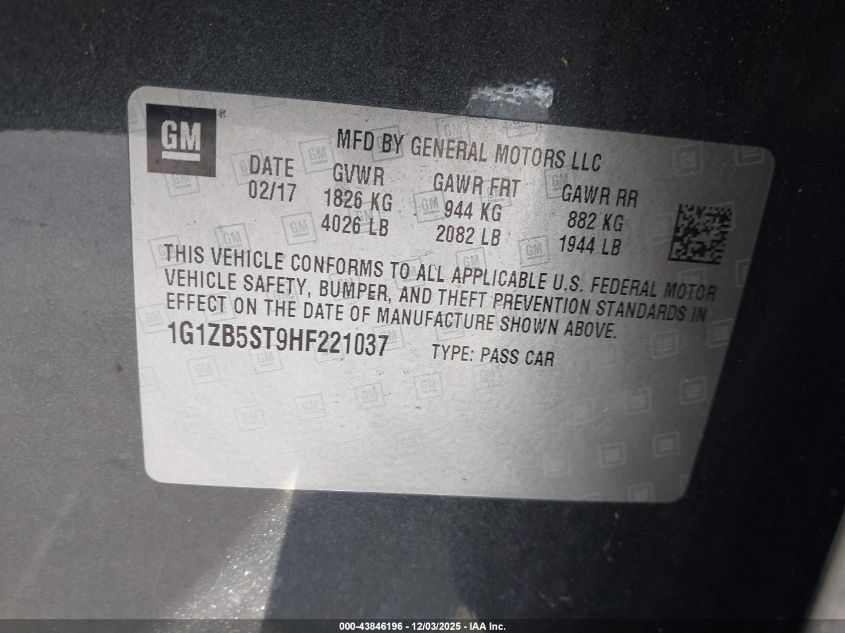 2017 CHEVROLET MALIBU 2017 року Бензин, 1.5, Передний привод, vin - 1G1ZB5ST9HF221037 из США