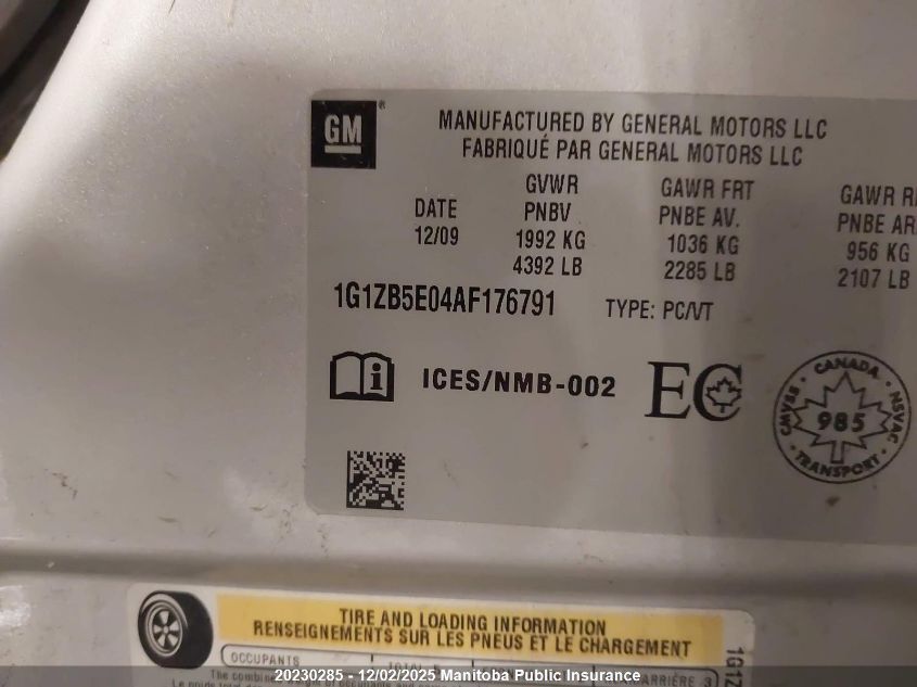 Цвет СерыйЦилиндры 4Привод Передний приводVIN 1G1ZB5E04AF176791Состояние ЗаводитсяПовреждения Задняя леваяДата аукциона 2025-12-10