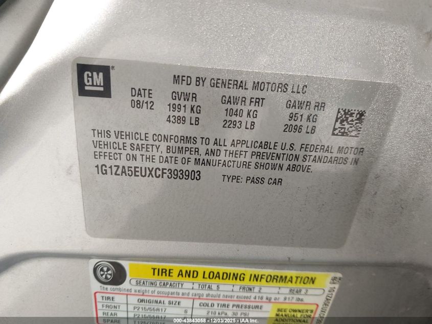 Цвет СеребряныйЦилиндры 4Привод Передний приводVIN 1G1ZA5EUXCF393903Состояние Заводится и едет (проверено)Повреждения Передняя или задняя AutoRIA