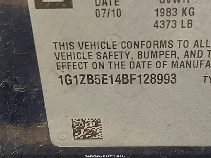 Цвет СинийЦилиндры 4Привод Передний приводVIN 1G1ZB5E14BF128993Состояние СтационарноПовреждения Передняя или задняя