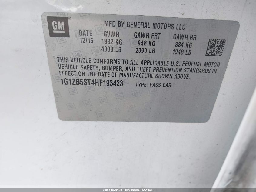 2017 CHEVROLET MALIBU 2017 року Бензин, 1.5, Передний привод, vin - 1G1ZB5ST4HF193423 из США