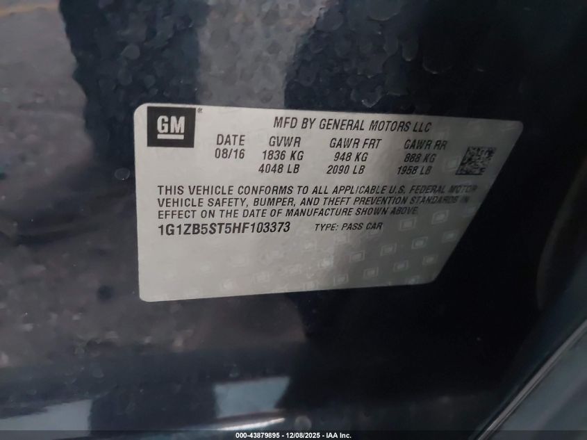 2017 CHEVROLET MALIBU 2017 року Бензин, 1.5, Передний привод, vin - 1G1ZB5ST5HF103373 из США