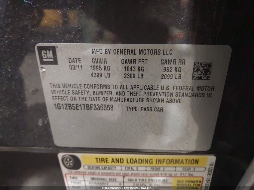 Цвет Цилиндры 4Привод Передний приводVIN 1G1ZB5E17BF336558Состояние НеизвестноПовреждения Неизвестно