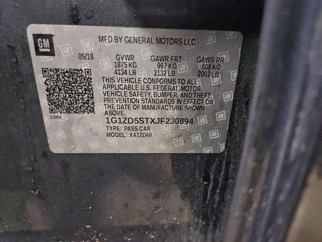 2018 CHEVROLET MALIBU 2018 року Бензин, 1.5, , vin - 1G1ZD5STXJF230894 из США