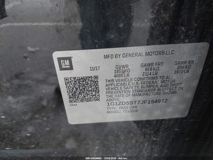 2018 CHEVROLET MALIBU 2018 року Бензин, 1.5, Передний привод, vin - 1G1ZD5ST7JF154972 из США