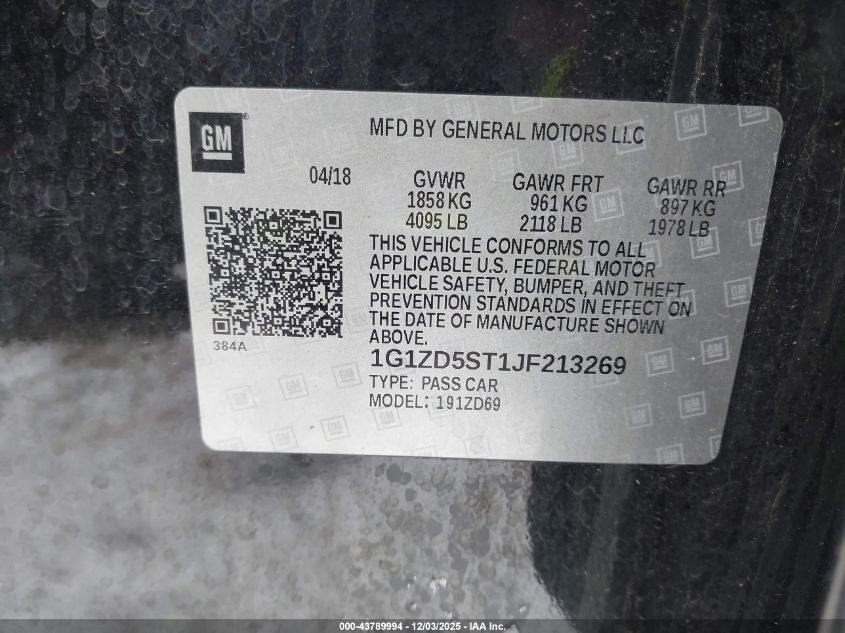 2018 CHEVROLET MALIBU 2018 року Бензин, 1.5, Передний привод, vin - 1G1ZD5ST1JF213269 из США