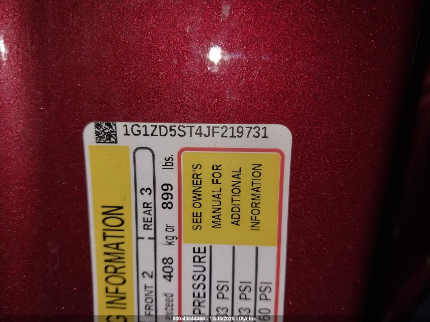Цвет КрасныйЦилиндры 4Привод Передний приводVIN 1G1ZD5ST4JF219731Состояние Заводится и едет (проверено)Повреждения Передняя или задняя AutoRIA