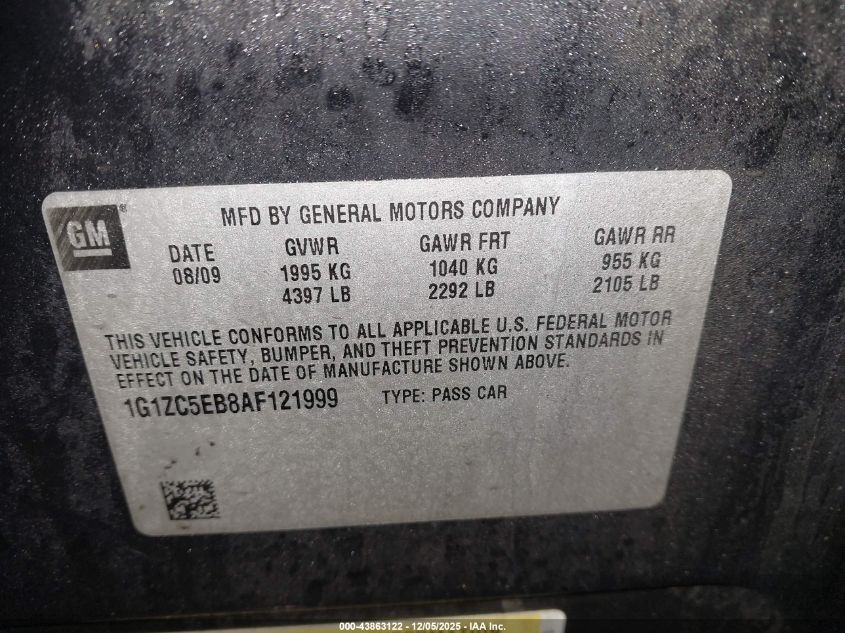 2010 CHEVROLET MALIBU 2010 року Бензин, 2.4, Передний привод, vin - 1G1ZC5EB8AF121999 из США