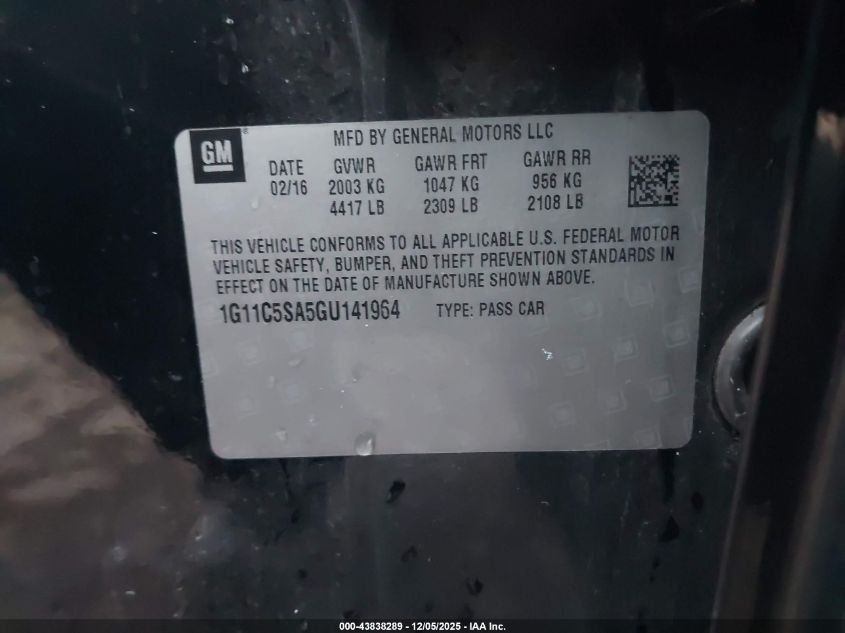 2016 CHEVROLET MALIBU 2016 року Бензин, 2.5, Передний привод, vin - 1G11C5SA5GU141964 из США