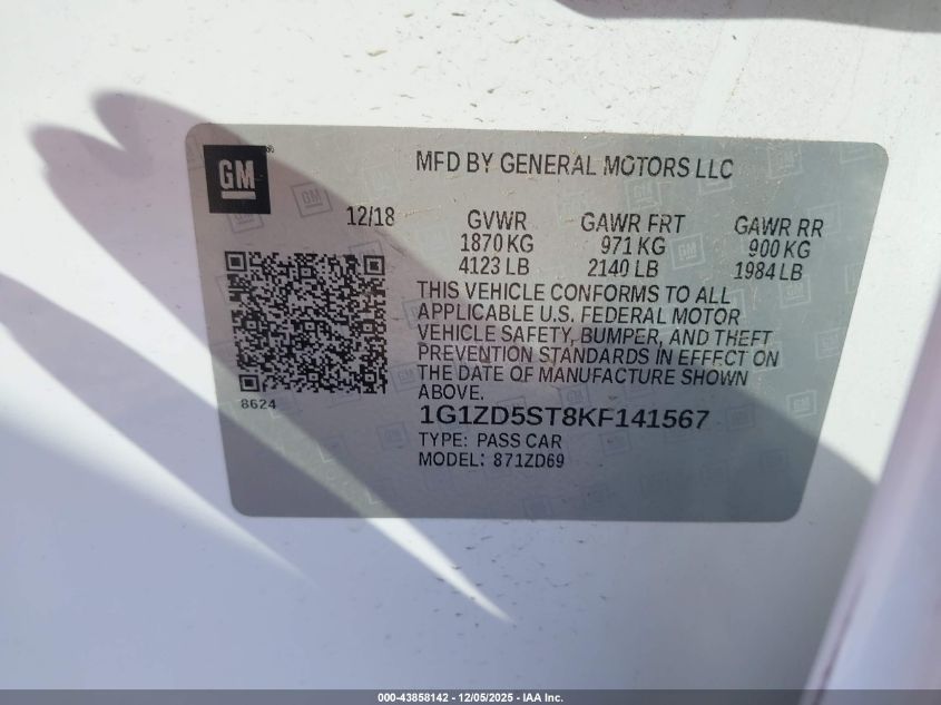 2019 CHEVROLET MALIBU 2019 року Бензин, 1.5, Передний привод, vin - 1G1ZD5ST8KF141567 из США