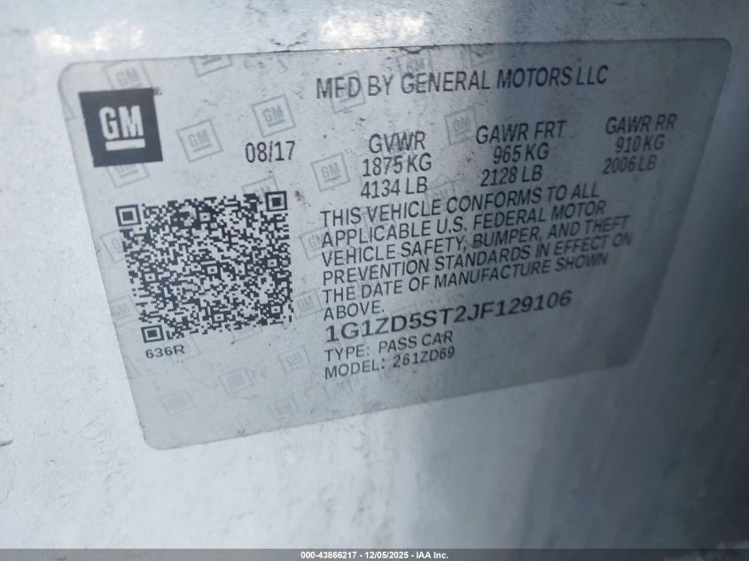2018 CHEVROLET MALIBU 2018 року Бензин, 1.5, Передний привод, vin - 1G1ZD5ST2JF129106 из США