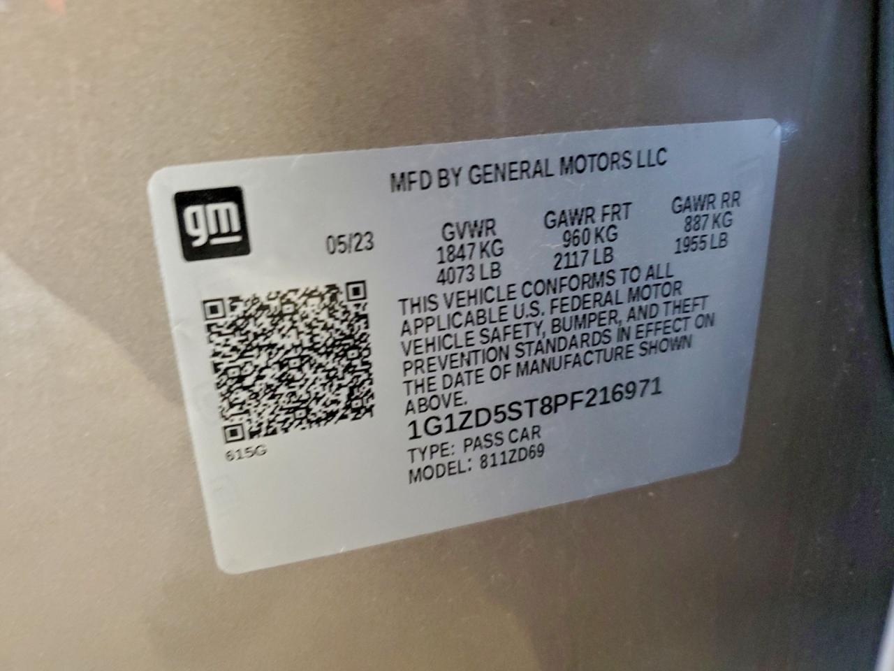 2023 CHEVROLET MALIBU 2023 року Бензин, 1.5, , vin - 1G1ZD5ST8PF216971 из США