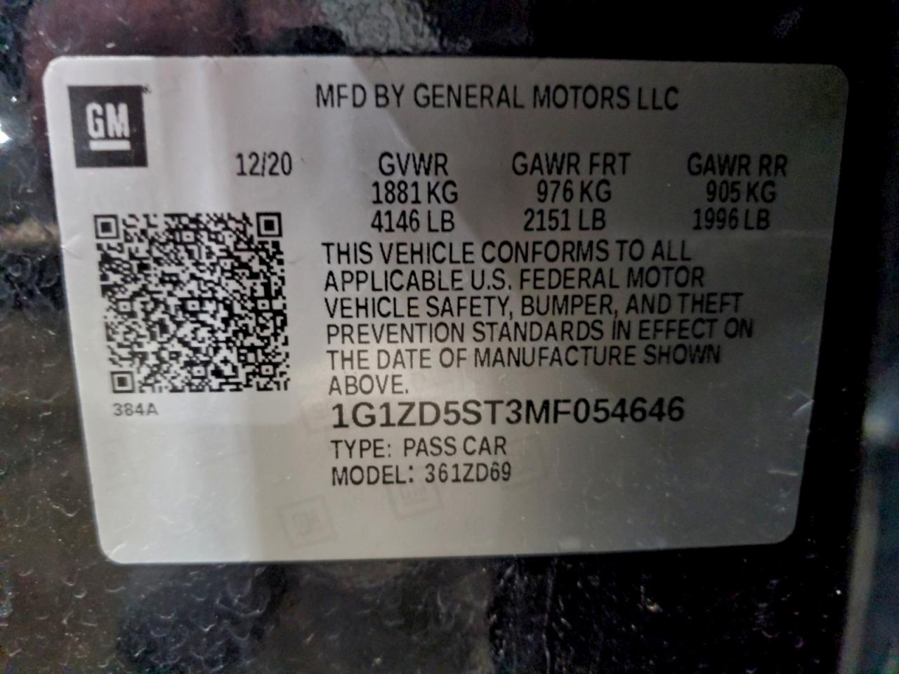 2021 CHEVROLET MALIBU 2021 року Бензин, 1.5, , vin - 1G1ZD5ST3MF054646 из США