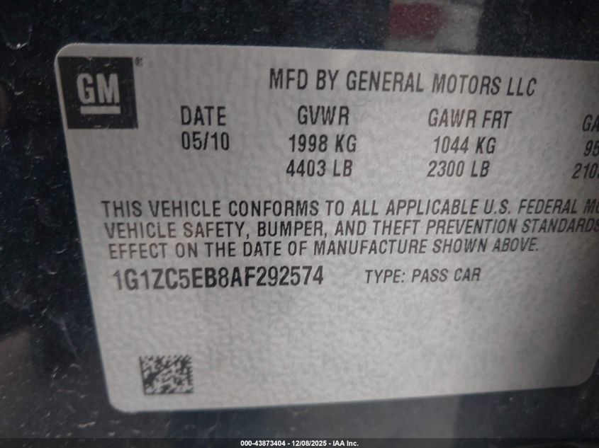 2010 CHEVROLET MALIBU 2010 року Бензин, 2.4, Передний привод, vin - 1G1ZC5EB8AF292574 из США
