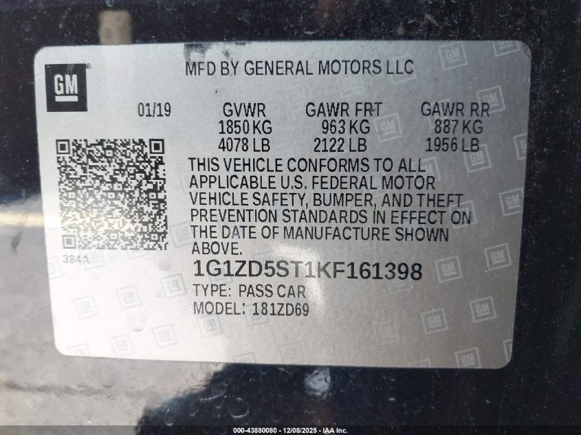 2019 CHEVROLET MALIBU 2019 року Бензин, 1.5, Передний привод, vin - 1G1ZD5ST1KF161398 из США
