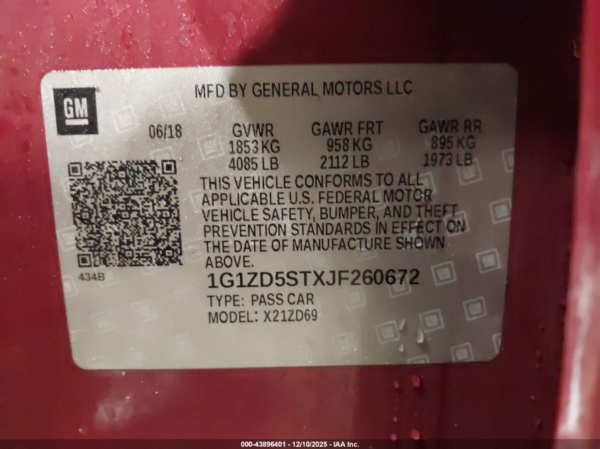2018 CHEVROLET MALIBU 2018 року Бензин, 1.5, Передний привод, vin - 1G1ZD5STXJF260672 из США