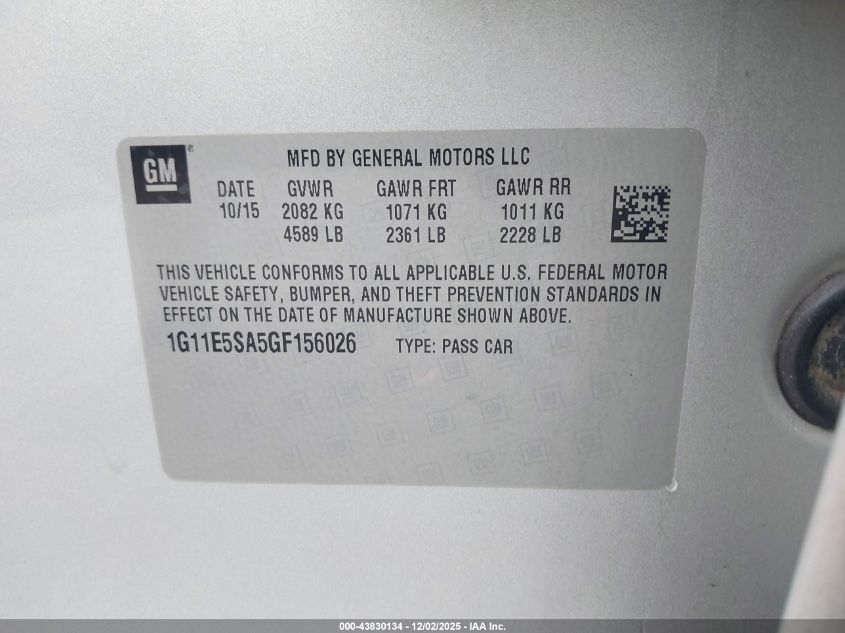 2016 CHEVROLET MALIBU 2016 року Бензин, 2.5, Передний привод, vin - 1G11E5SA5GF156026 из США
