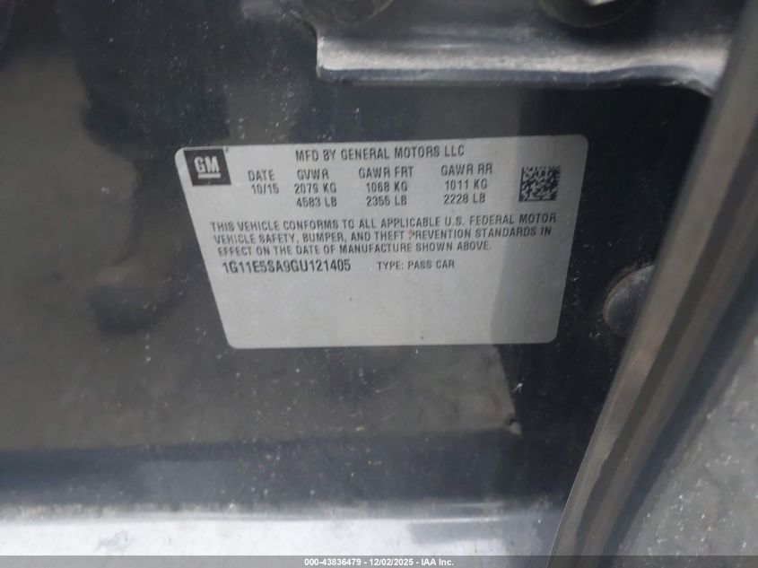 2016 CHEVROLET MALIBU 2016 року Бензин, 2.5, Передний привод, vin - 1G11E5SA9GU121405 из США