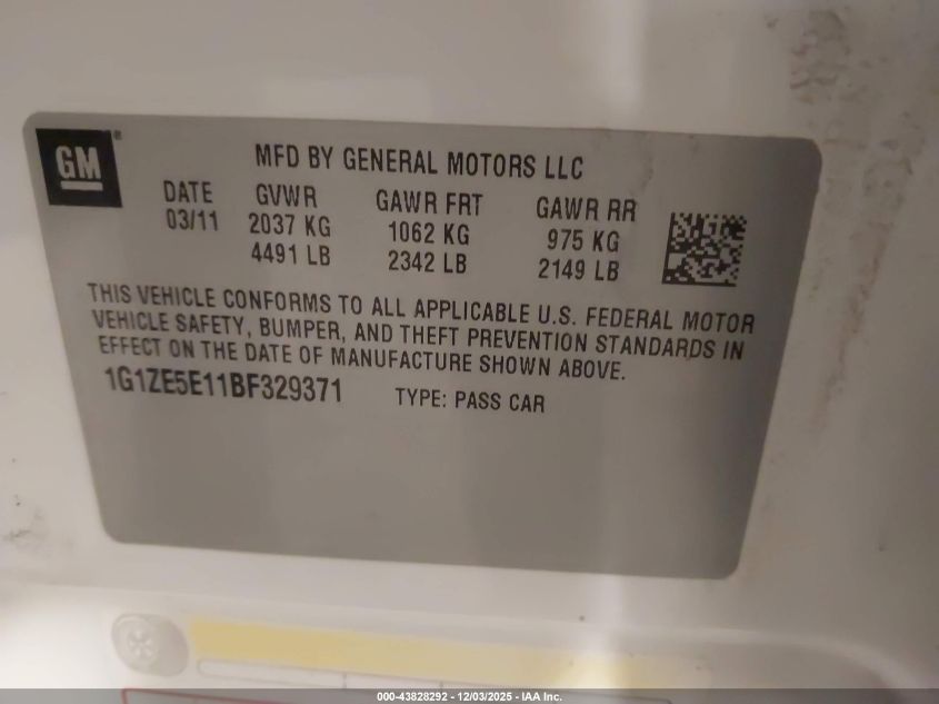 2011 CHEVROLET MALIBU 2011 року Бензин, 2.4, Передний привод, vin - 1G1ZE5E11BF329371 из США