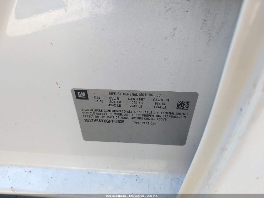 2016 CHEVROLET MALIBU 2016 року Бензин, 2.0, Передний привод, vin - 1G1ZH5SXXGF192535 из США