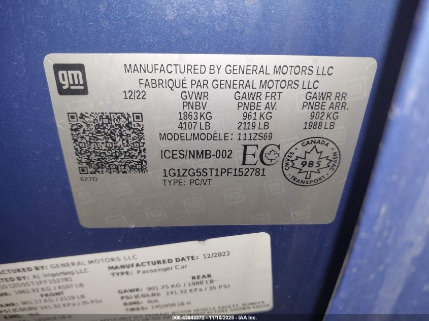 2023 CHEVROLET MALIBU 2023 року Бензин, 1.5, Передний привод, vin - 1G1ZG5ST1PF152781 из США