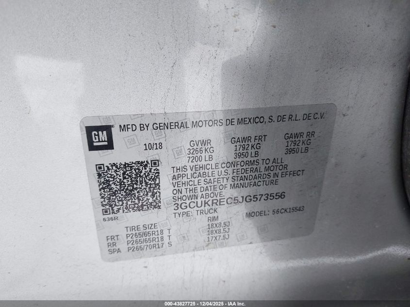 2018 CHEVROLET SILVERADO 1500 2018 року Бензин, 5.3, Полный привод, vin - 3GCUKREC5JG573556 из США