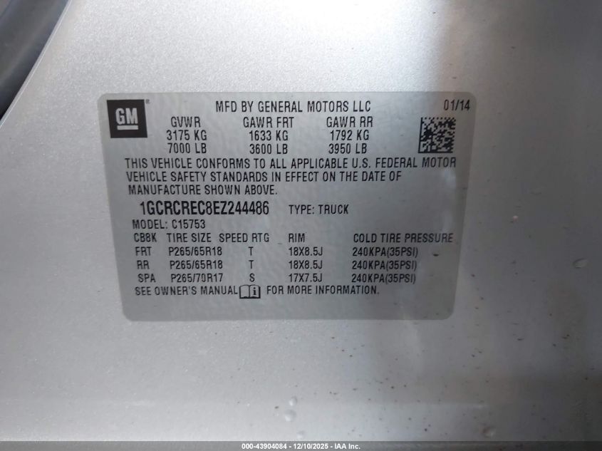 Цвет СеребряныйЦилиндры 8VIN 1GCRCREC8EZ244486Состояние Заводится и едет (проверено)Повреждения Передняя или задняя