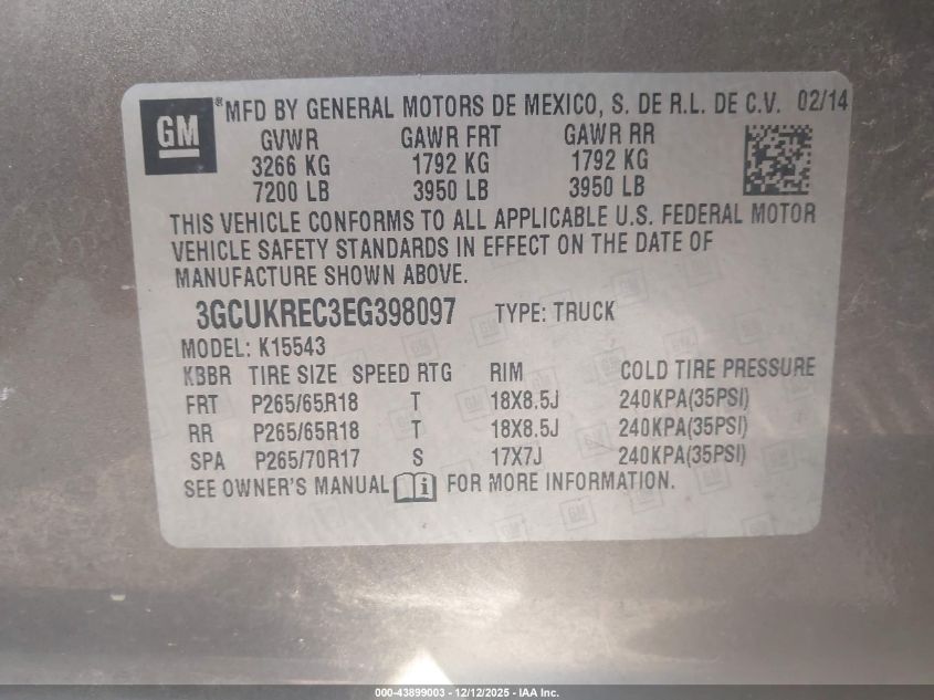 2014 CHEVROLET SILVERADO 1500 2014 року Бензин, 5.3, Полный привод, vin - 3GCUKREC3EG398097 из США