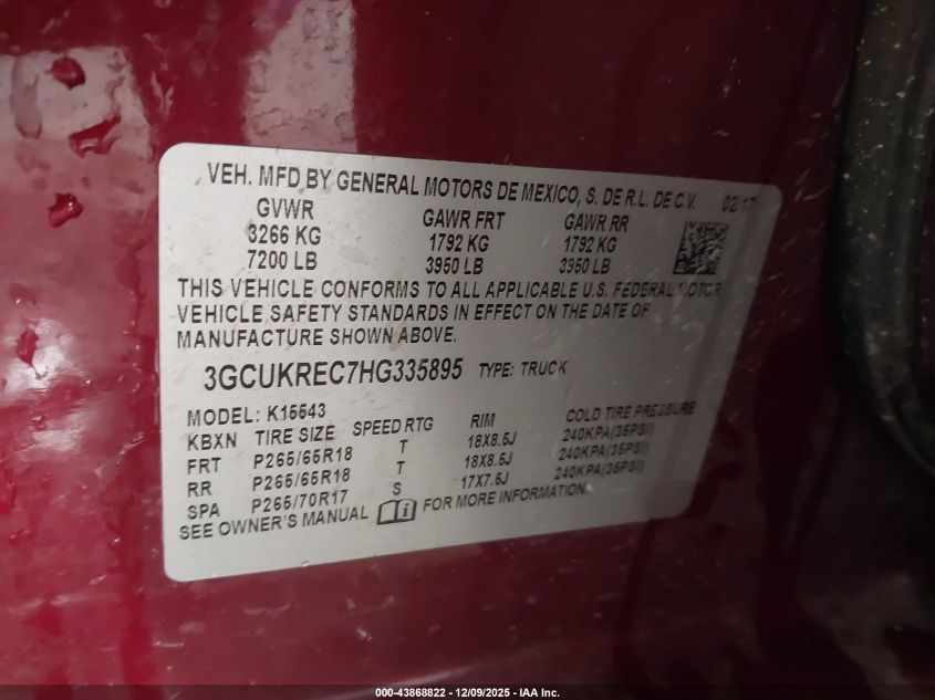 2017 CHEVROLET SILVERADO 1500 2017 року Бензин, 5.3, Полный привод, vin - 3GCUKREC7HG335895 из США