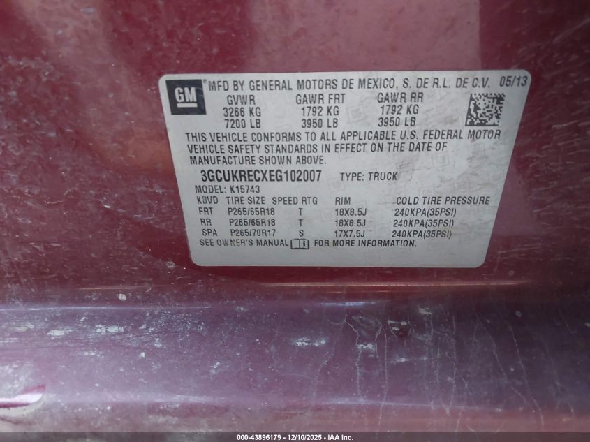 Цвет БордовыйЦилиндры 8Привод Полный приводVIN 3GCUKRECXEG102007Состояние СтационарноПовреждения Передняя или задняя