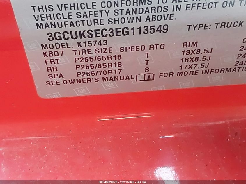 2014 CHEVROLET SILVERADO 1500 2014 року Бензин, 5.3, Полный привод, vin - 3GCUKSEC3EG113549 из США