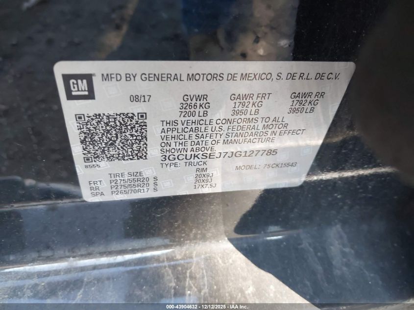 Цвет ЧерныйЦилиндры 8Привод Полный приводVIN 3GCUKSEJ7JG127785Состояние СтационарноПовреждения Передняя или задняя