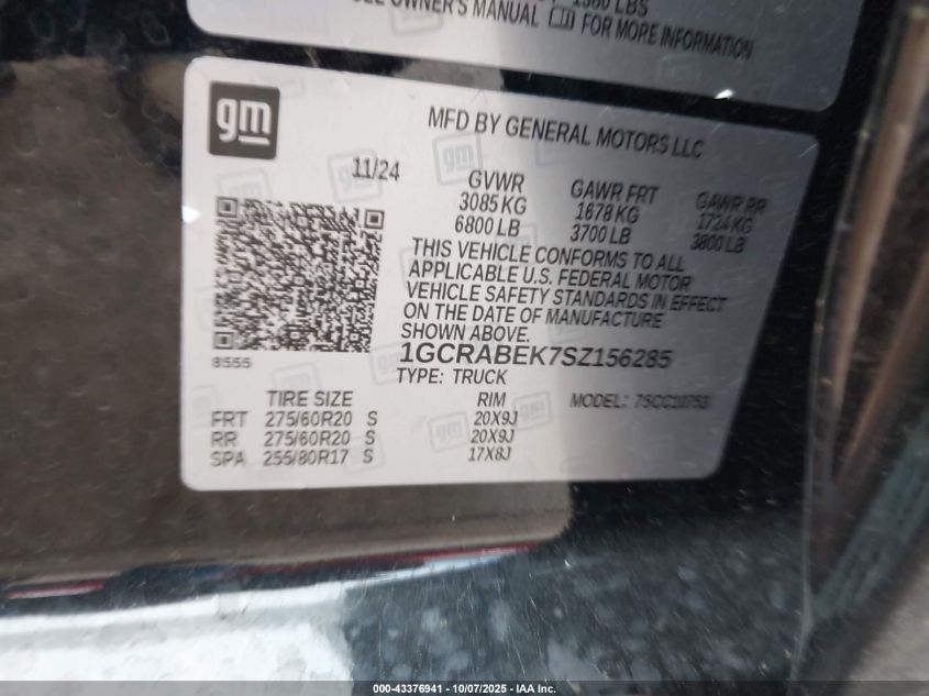 2025 CHEVROLET SILVERADO 1500 2025 року Бензин, 2.7, , vin - 1GCRABEK7SZ156285 из США