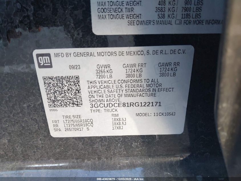 2024 CHEVROLET SILVERADO 1500 2024 року Дизель, 3.0, Полный привод, vin - 3GCUDCE81RG122171 из США