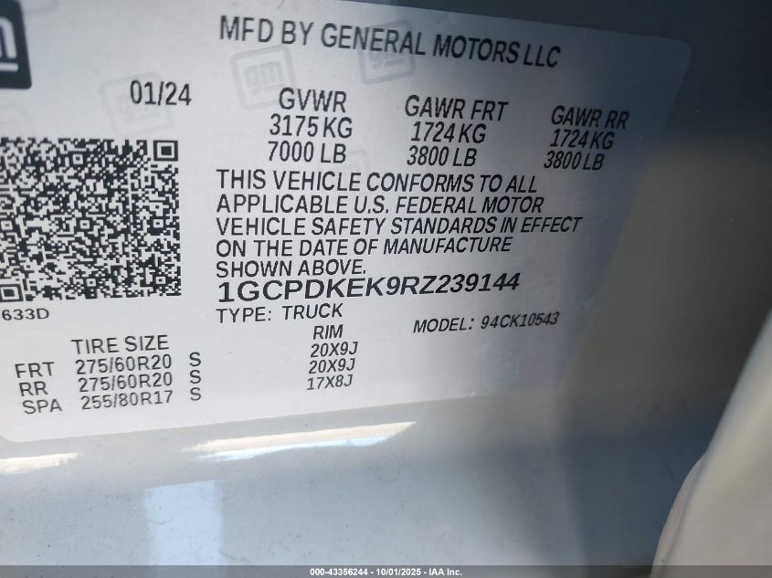 2024 CHEVROLET SILVERADO 1500 2024 року Бензин, 2.7, Полный привод, vin - 1GCPDKEK9RZ239144 из США