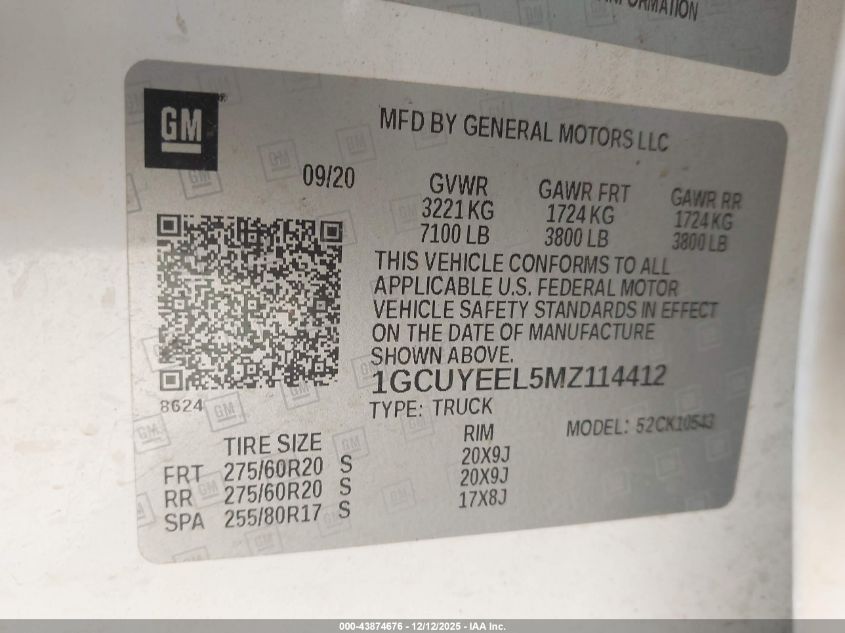 2021 CHEVROLET SILVERADO 1500 2021 року Бензин, 6.2, Полный привод, vin - 1GCUYEEL5MZ114412 из США
