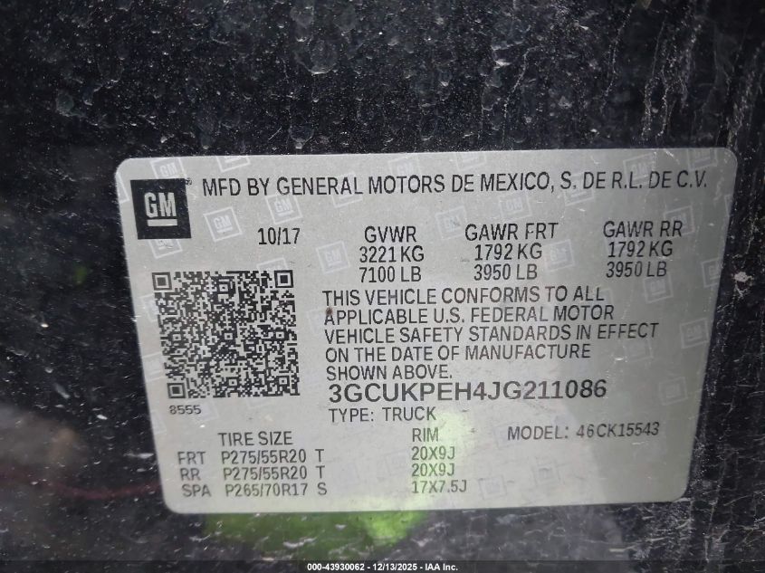 Цвет Цилиндры 6Привод Полный приводVIN 3GCUKPEH4JG211086Состояние НеизвестноПовреждения Неизвестно