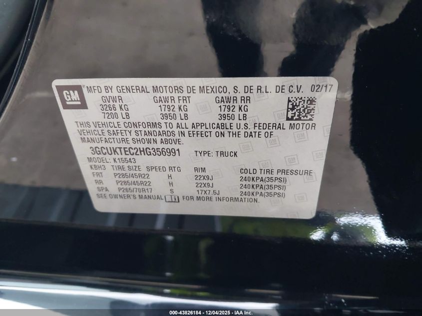 2017 CHEVROLET SILVERADO 1500 2017 року Бензин, 5.3, Полный привод, vin - 3GCUKTEC2HG356991 из США